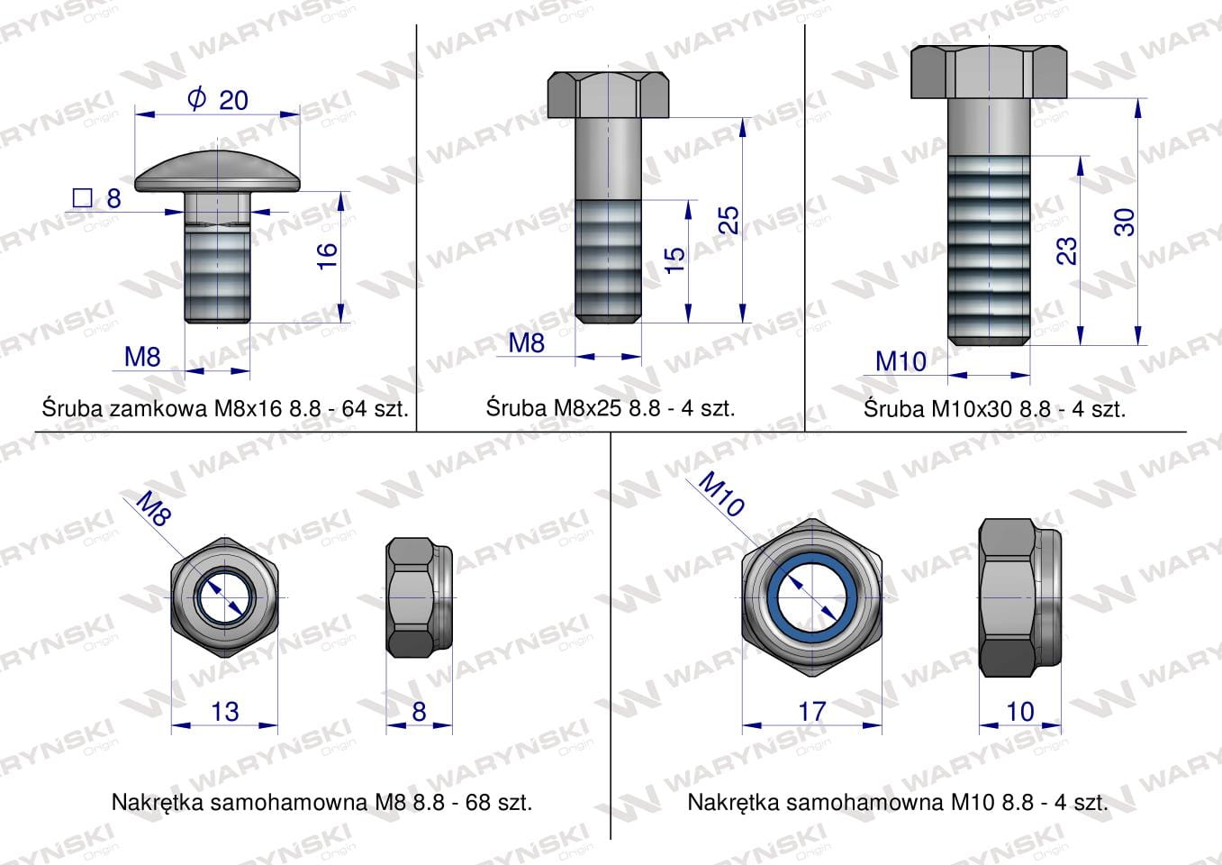 Śruba zamkowa M8x16 8.8 - 64szt