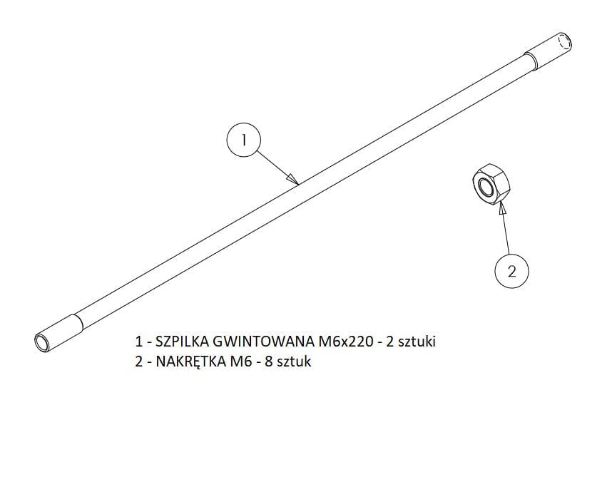 Opakowanie zbiorcze: 1 kpl. (2 szpilki, 8 nakrętek)