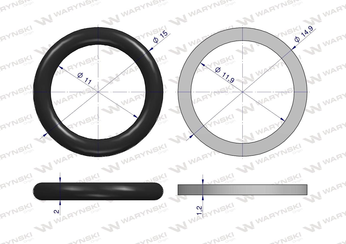 Zestaw uszczelnień do szybkozłączy hydraulicznych 1/4" ISO 7241-A Waryński ( sprzedawane po 2 )
