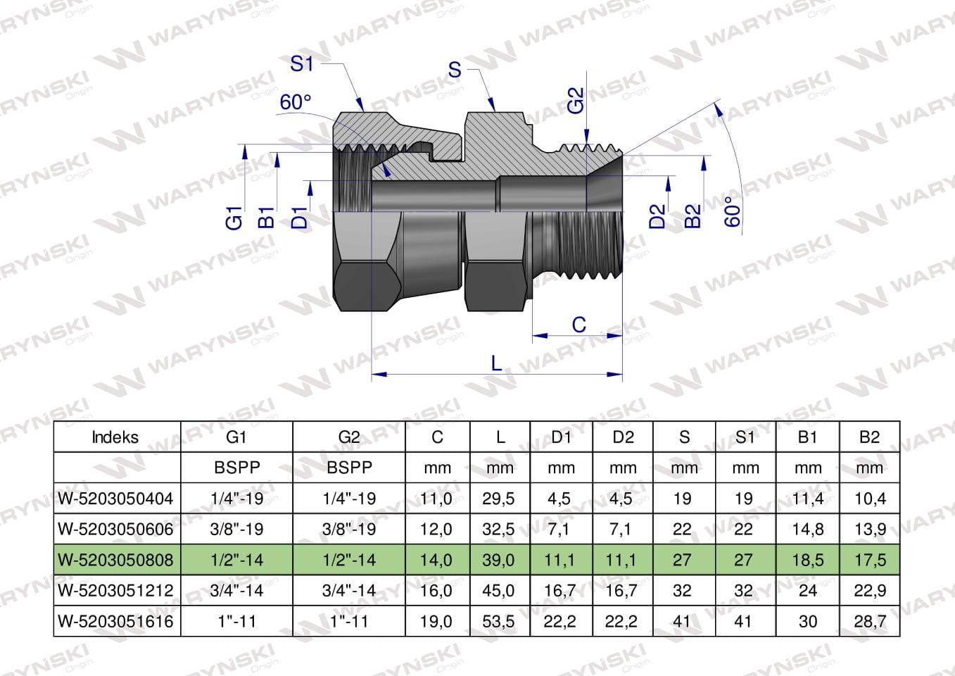 Złączka hydrauliczna calowa AB 1/2" BSP (XKOR) Waryński