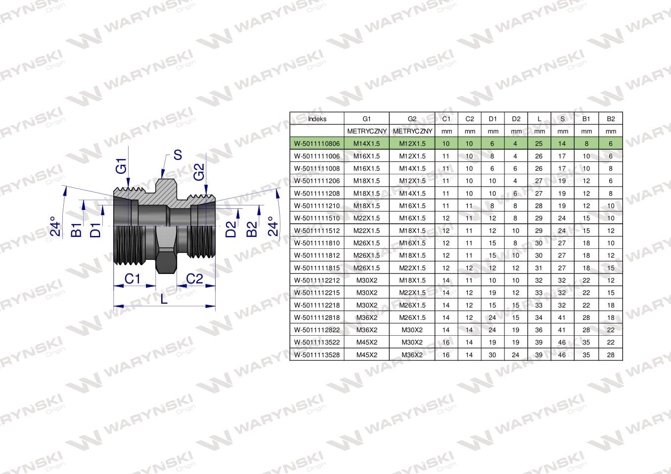 Złączka hydrauliczna redukcyjna metryczna BB M14x1.5 08L / M12x1.5 06L (XG) Waryński