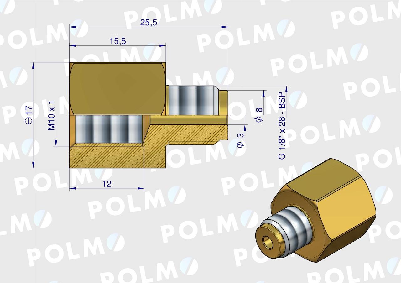 Złączka manometryczna gwint zewnętrzny G1/8" x gwint wewnętrzny M10x1 (mosiądz) POLMO