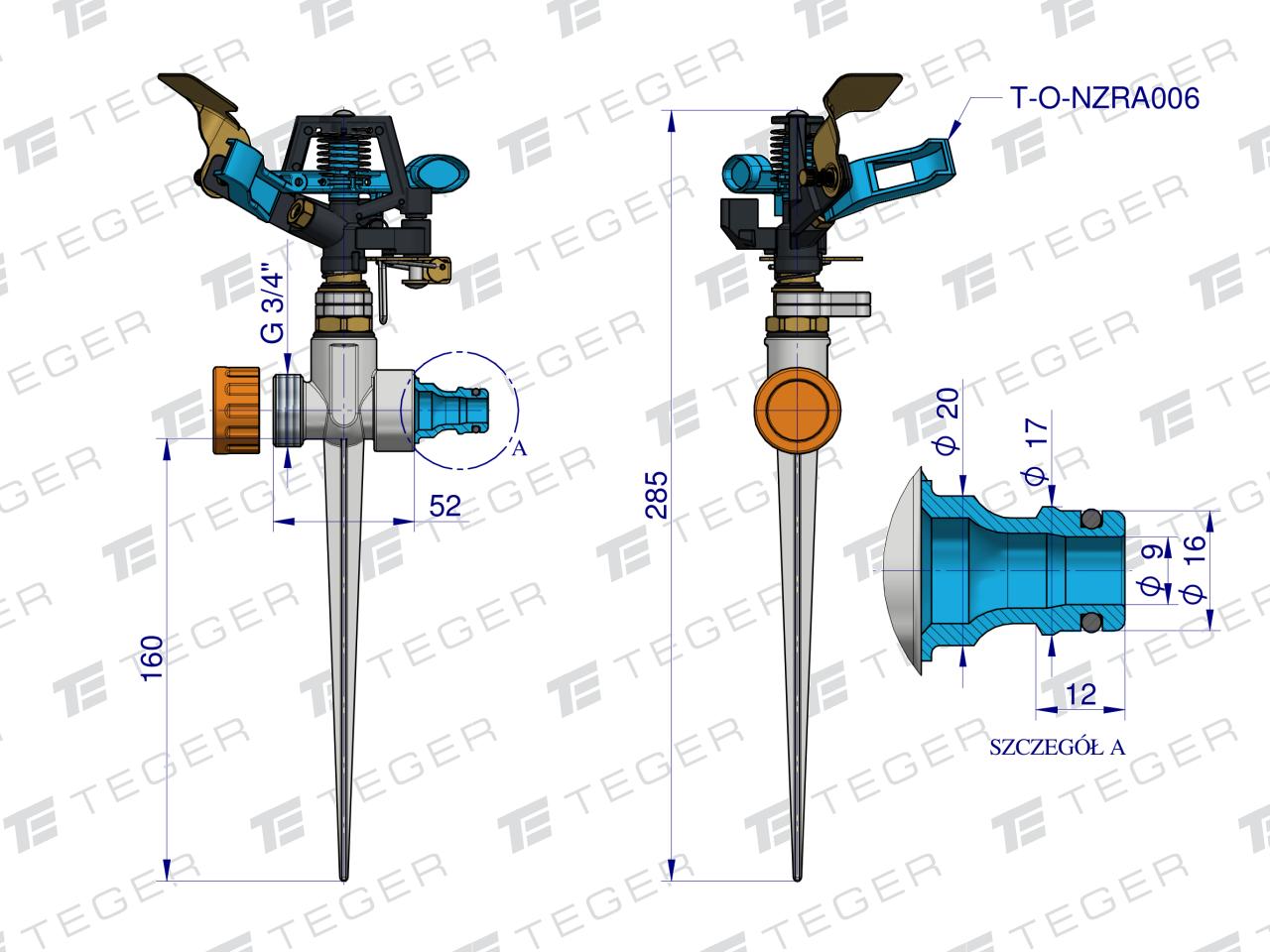 Zraszacz ogrodowy - impulsowy metalowy TEGER